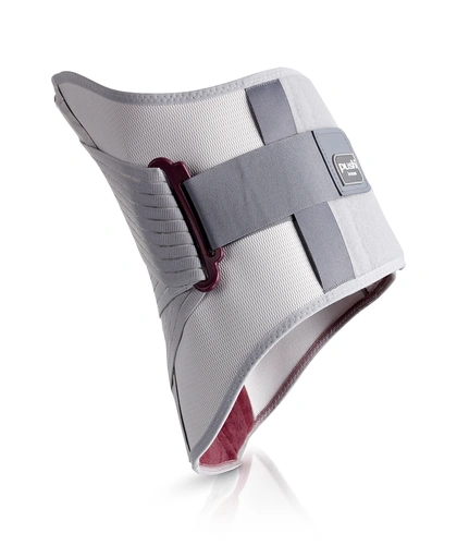 Die Push med Lumbalbandage ist in der Farbe Grau/Aubergine verfügbar. Eine Anfertigung nach Maß ist möglich. Die Produkthöhe beträgt auf der Rückenseite 32 cm.