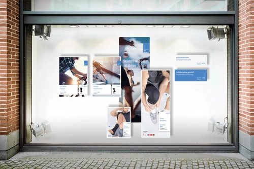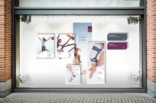 Mitten im Leben, immer in Bewegung: kein Problem mit Premium-Bandagen von Dynamics Plus und Push. Das ist die Botschaft der neuen Orthopädie-Dekoration. Großformatige Motive bringen urbanes Flair in Ihr Schaufenster. Der Pulsschlag der Stadt und individuelle Freiräume verschmelzen zu einer stimmungsvollen Atmosphäre.