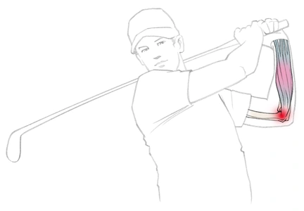 Das Pendant an der Innenseite des Ellenbogens wird als Golferarm (Epicondylitis humeri medialis bzw. ulnaris) bezeichnet und rührt von Verspannungen der Beugemuskulatur her.