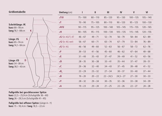 Lastofa-Kompressionsstrümpfe sind in den üblichen Ausführungen in einem breit gefächerten Seriengrößensystem erhältlich. So kann eine Vielzahl an Patienten schnell und effektiv versorgt werden.
