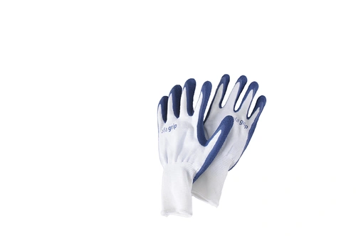 Die Handschuhe sind aus einem atmungsaktiven Gestrick, sodass die Haut nicht mit der Latex-Beschichtung in Kontakt kommt.