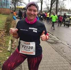 Den Silvesterlauf 2017 läuft Yvonne mit Kompressionsstrümpfen.