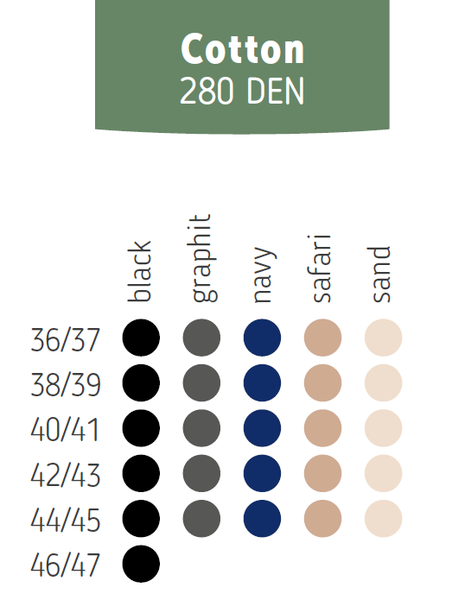 SKYSOCKS Cotton überzeugt optisch mit seiner leichten Rippstruktur. Das Tragegefühl ist durch den Baumwollanteil angenehm wohlig auf der Haut. Die spürbar entlastende Unterstützung der SKYSOCKS Cotton hält die Beine besonders lange fit.