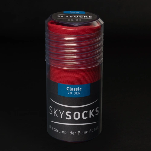 SKYSOCKS Classic begeistert mit seinem geschmeidigen, glatten Maschenbild. Das Tragegefühl ist durch das elastische Garn sehr weich. Die sanfte Unterstützung der SKYSOCKS Classic entlastet die Beine und hält sie fit.