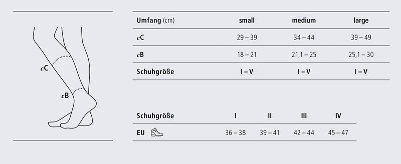 Der korrekte Druckverlauf fördert die Durchblutung in den Venen und hilft, einer Reisethrombose vorzubeugen. Die optimale Passform wird durch die Schuhgröße und verschiedener Messpunkte am Bein ermittelt. So passt sich Gilofa ausgezeichnet an die individuelle Beinmaße an.